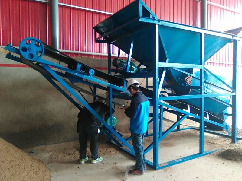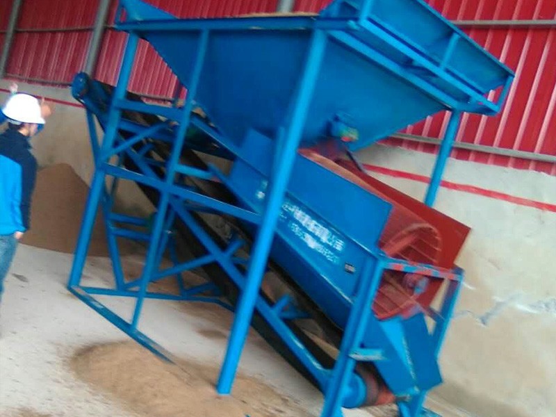 整個設備由原料儲料斗、原料供料皮帶機、平置篩網、成品砂堆料皮帶、棄石出料槽等組成,設備通電運轉后由裝載機將原料裝入大容量儲料斗,原料經由供料皮帶投入到平置篩筒,旋轉的篩筒帶動原料在筒內葉片的推擠、翻滾下形成原料在篩網面滑滾的人工篩砂效果,篩出的成品砂通過集料斗落在成品砂皮帶上,同時被皮帶提升落下呈成品料堆、或直接落入儲料斗,整個過程連續且物料分級清楚。