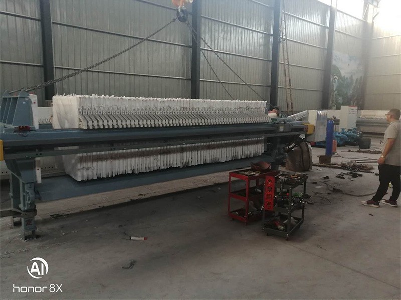 液壓壓緊板框式壓濾機(jī)由主機(jī)(機(jī)架和濾室)、液壓部件和電氣等部分組成。